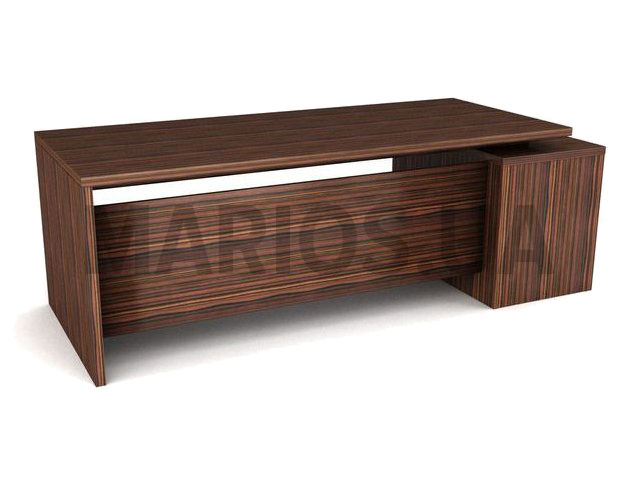 230.00см x 90.00см x 78.00см Характеристики мебели Материал ДСП 18 mm EGGER. Стол руководителя с тумбой 230х90х78 Характеристики: Стол руководителя со встроенной тумбой. Три ящика на телескопических направляющих полного выдвижения, закрываются центральным замком. Материал: ДСП 18 mm EGGER. Торцы - антиударная кромка ПВХ. Стандартно изготавливается в трех цветах: макасар, дуб венге, фино бронза с кромкой под алюминий. Возможно изготовление в других цветах ДСП EGGER. Размер: Длина: 230 см Ширина: 90 см Высота: 78 см Размер основной столешницы 210х90 см, высота вспомогательной части 68 мм. Возможно левостороннее так и правостороннее исполнение.
