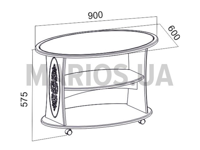 60.00см x 90.00см x 57.50см Характеристики мебели Материал ДСП, МДФ, ПВХ Стол журнальный АС-17 Ассоль – это воплощение хрупкой изящности и элегантной утонченности в одном эксклюзивном изделии. Технология объемного нанесения узора по бокам делает модель незаменимым дизайнерским элементом любого интерьера. Имеет верхнюю столешницу и нижнюю полочку дополнительно. Стол опирается на колесики, что придает ему большую мобильность. Размеры: ширина: 90 см;высота: 57,5 см;глубина: 60 см. Материалы: модули изготовлены из ДСП 16 мм;применяются МДФ фасады;торцы деталей обклеиваются ПВХ-кромкой. Особенностью является применение технологии объемного нанесения узора. Ручки – фигурные. Вы также можете приобрести полноценную систему Ассоль, в которой скомбинированы различные элементы интерьера.