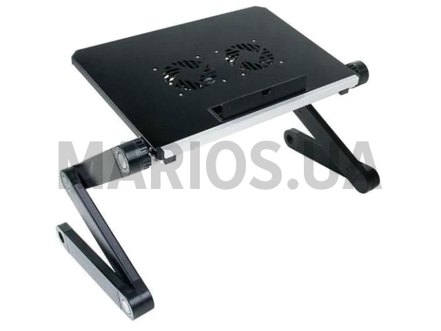 Шарниы: ABC-пластик. Столик для ноутбука UFT T4 предназначен для установки ноутбука сидя за столом, на кресле, на полу, на кровати. Столик очень легкий и компактный, изготовлен из сплава алюминия. Выдерживает нагрузку до 15кг. На столике имеется бортик, благодаря, которому он защитит ноутбук от падения. Стол может быть черного или красного цвета.Размеры столика: В сложенном виде (шхвхг): 35х26,5х3 см; Столешница (шхв): 35х26,5 см; Рабочая поверхность (шхв): 35,1х25,5 см; Подставка под мышку: отсутствует; Предельная высота: 46 см; Длина одной секции ножки: 21 см.Характеристики столика: Тип столика: Трансформер. Накроватный, прикроватный, подставка; Возможое использование: На полу при кресле, на диване сидя, на кровати лежа, подставка на стол; Подходит ноутбук: 14, 15, 16, 17; Охлаждение: Активное; Вентиляторы: 2; USB хаб: отсутствует; Питание: от порта USB;Дополнительные характеристики: Вес: 1,7кг; Максимальная нагрузка: 15кг; Цвет: красный; Поверхность: матовая; Особенности: Предельный угол наклона столешницы 360 градусов; Упор для ноутбука складывается в столешницу;Комплектация: Столик для ноутбука, USB кабель питания.Материал: Столешница/ножки: сплав алюминия; Шарниы: ABC-пластик.
