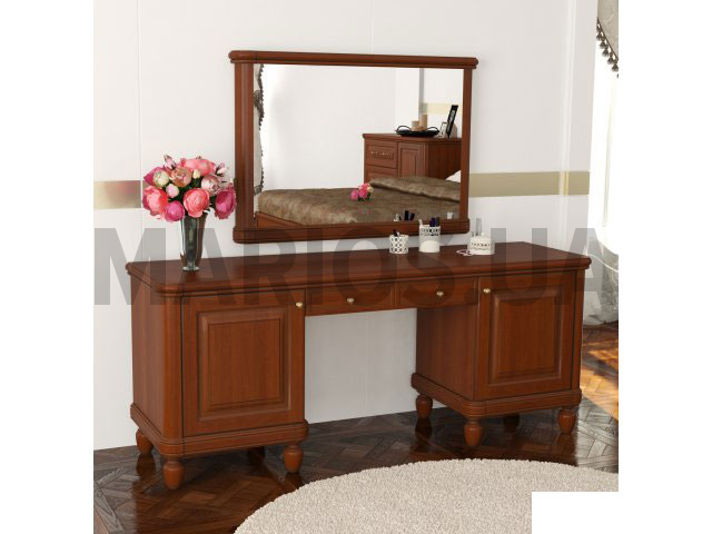 165.00см x 50.00см x 81.00см Вес0.00кг Характеристики мебели Материалольха Столик туалетный Омега Комфорт представляет собой элегантную и роскошную модель, которая станет изюминкой Вашей спальни и подарит всегда хорошее настроение и улыбку в отражении зеркала. Грация декоративных линий, богатая фурнитура и шикарный цвет "коньяка", в котором исполнен туалетный столик, сделает атмосферу в комнате поистине королевской и неповторимой. Столик состоит из двух отделений с дверцами справа и слева, а по центру расположены два компактных ящика, где могут храниться украшения и другие мелкие и нужные вещицы. Туалетный столик выполнен из натурального и экологически чистого материала, древесины ольхи, поэтому гармония и уютная атмосфера в спальне Вам просто обеспечена. А качество материала гарантирует немалое время эксплуатации донной модели.Размеры туалетного столика Омега Комфорт:Высота, см Ширина, см Глубина, см81 165 50Этот элемент можно дополнить и другими предметами мебели Омега Комфорт и тогда Ваша спальня будет самой красивой и универсальной.