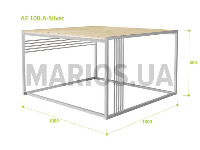 100.00см x 100.00см x 60.00см Характеристики мебели Материалалюминий, фанера облицована шпоном натурального дуба Столик журнальный AF108. А-SilverХарактеристики:Материал каркаса: анодированный алюминийМатериал столешницы: фанера облицована шпоном натурального дуба и покрыта масло-воскомОпоры: роликовые, съемныеВысота: 60 смШирина: 100 смГлубина: 100 смВес: 17.6 кгМаксимальная нагрузка: 80 кгЦвет: дуб светлыйЦвет алюминиевого профиля: серебристыйОсобенности: 2 типа опор в комплектеГарантия: 24 месяца