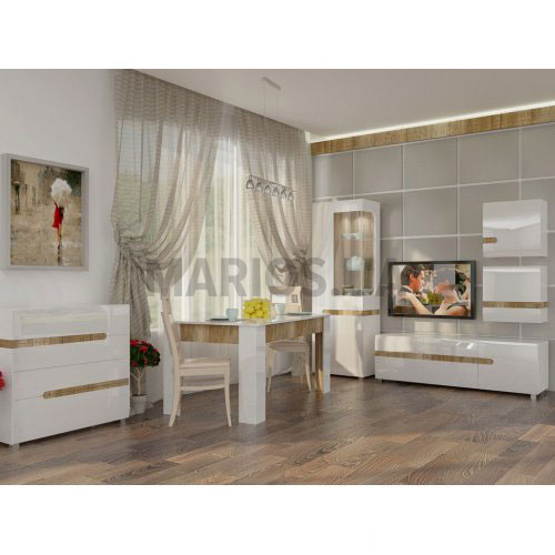 Характеристики мебели Материал ламинированное ДСП 16 мм и МДФ 19 мм Столовая Letis. Все элементы гарнитура изготовлены из ламинированной плиты ДСП толщиной 16 мм и ламинированной плиты МДФ толщиной 19 мм, обклееной глянцевой пленкой ПВХ. На дверях шкафов установленны механизмы плавного закрывания. В гарнитур входит: Тумба Letis P: ширина - 42 см; высота - 46 см; длина - 164 см. Тумба навесная Letis G: ширина - 28 см; высота - 54,5 см; длина - 54,5 см. Тумба нпвесная Letis : ширина - 28 см; высота - 54,5 см; длина - 54,5 см. Витрина Letis C1: ширина - 42 см; высота - 195 см; длина - 85 см. Комод Letis L: ширина - 42 см; высота - 87 см; длина - 96 см. Обеденный стол Letis S: ширина - 90 см; высота - 75,5 см; длина - 160 см.