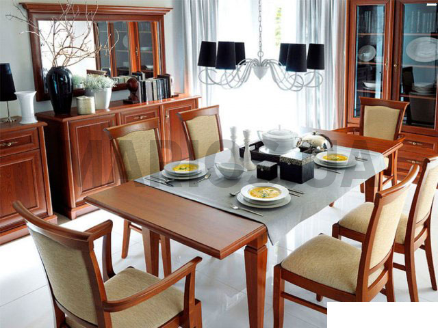Характеристики мебели Материал ЛДСП, МДФ. Столовая Соната Характеризуется изысканным дизайном цоколей, карнизов и дверок, стеклами с фрезерованными краями и утонченными патинированными ручками. Цвет: каштан. Материал: Корпус: ЛДСП. Фасад: МДФ. Состоит из: Комод 2d/2s Размеры изделия: (Ш/В/Г) - 100.9/90.5/44.7 см. Комод 3d/1s Размеры изделия: (Ш/В/Г) - 153.5/90.5/44.5 см. Зеркало 155 Размеры изделия: (Ш/В/Г) - 155/88/11 см. Витрина 2d/2s Размеры изделия: (Ш/В/Г) - 110/204.5/43 см. Стол обеденный 160 Размеры изделия: (Ш/В/Г) - 90/76/160 см. Стулья в комплект не входят.