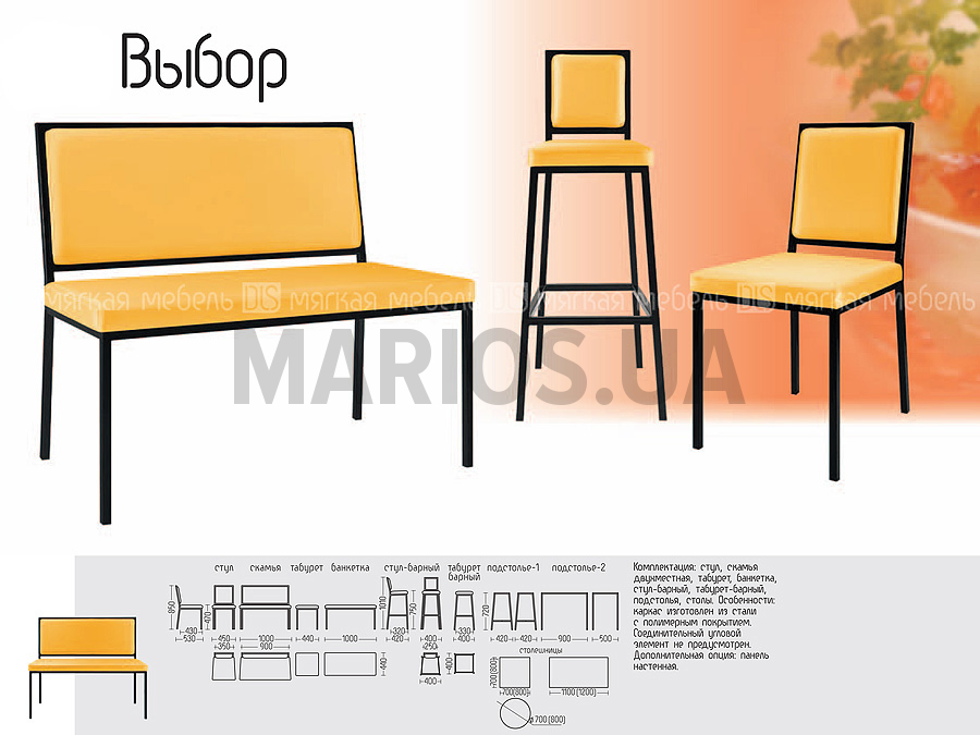 | 4 | Табурет "Выбор" DLS | 1 338 грн. | 1 252 грн. | 1 315 грн. | 1 612 грн. | 2 081 грн. | 2 986 грн. |