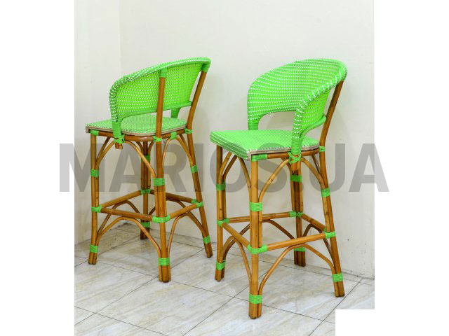 53.00см x 44.00см x 110.00см Характеристики мебели Материал ротанг Стул Bistro Bar Размеры: Ширина - 44Длина - 53Высота - 110 Цвет: медовый, зеленый Материал: натуральный ротанг, исскуственный ротанг
