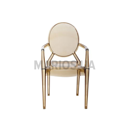 Характеристики мебели Материал пластик Стул Каспер прозрачный янтарь Характеристики: Материал: пластик с подлокотниками. Цвет: прозрачный янтарь. Размер: Ширина: 56.5 см Глубина: 53 см Высота: 93 см