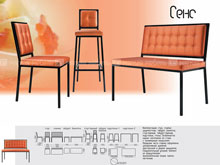 Стул "Сенс" - это яркий пример гармонирования классических и современных направлений, которое позволяет достичь универсальности в дизайне. Поэтому модель легко вписывается в любой интерьер любого типа помещения - ресторана, бара, гостиницы, дискотеки. Комплектация: стул, скамья двухместная, табурет, банкетка, стул-барный, табурет-барный, подстолья, столы. Особенности: каркас изготовлен из стали с полимерным покрытием. Передняя часть спинки оформлена декоративной двойной прострочкой в форме квадратов. Соединительный угловой элемент не предусмотрен. Дополнительные опции: панель настенная. Рекомендуемые обивочные материалы: кожзамы мягкие, эластичные. Кожи тонкие. Запрет на применение: кожи ПУ, крокко, буттеро, бикла. Ткани сыпучие, "рогожка", с раппортом (узором), в полоску. Примечание: Стандартные цвета окраски каркаса из черного металла с полимерным покрытием: золото, серебро, белый, черный, темно-коричневый - матовые; хром - глянец. Покраска каркаса в нестандартный цвет - 260 грн.