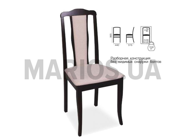 Севилия H изготовлен из массива бука. Обивка сиденья и спинки может быть исполнена в 20 вариантах ткани или кожзама. Стул разборной без видимых снаружи болтов. Размеры стула:высота: 96,5 см; ширина: 44 см; глубина: 51,5 см.