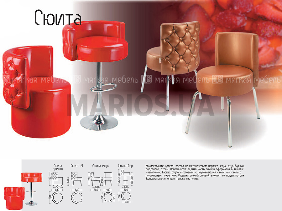 | 1 | Стул "Сюита" DLS | 3 116 грн. | 2 909 грн. | 3 115 грн. | 3 732 грн. | 6 119 грн. | 7 552 грн. |