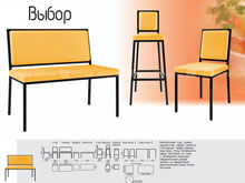 Стул "Выбор" - отличный выбор для ресторана, гостиницы и ночного клуба. Классический внешний вид дополняется конрастным каркасом, переходящим в ножки изделия. Комплектация: стул, скамья двухместная, табурет, банкетка, стул-барный, табурет-барный, подстолья, столы. Особенности: каркас изготовлен из стали с полимерным покрытием. Дополнительные опции: панель настенная. Рекомендуемые обивочные материалы: все. Примечание: стандартные цвета окраски каркаса из черного металла с полимерным покрытием: хром, серебро, золото, белый, черный, темно-коричневый. Покраска каркаса в нестандартный цвет - 260 грн. Подстолье-1 (420х420х720) - 616 грн. Подстолье-2 (900х500х720) - 668 грн.