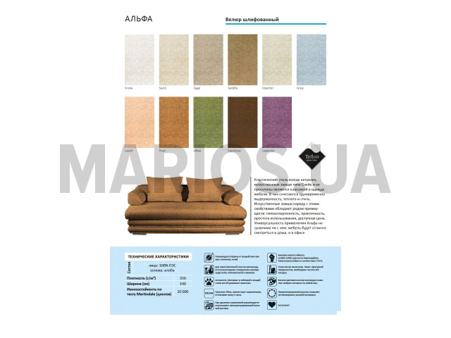 100.00см x 147.00см x 0.00см Характеристики тканей Износостойкость20000 Категория ткани7+ категория Плотность385 г/м.кв ПроизводительКорея Составлицо:100 % ПЭС Тип тканивелюр
