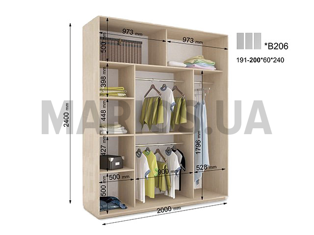 60.00см x 200.00см x 240.00см Характеристики шкафа Количество дверей3 двери Материал корпусаДСП 18мм, кромка ПВХ 0,5 и 2мм Оснащение6 полок, три зеркальные двери с пескоструем Форма шкафалинейный Шкаф-купе В206 с пескоструем - это отличная трехдверная модель, которая своей практичностью, качеством и превосходным дизайном не только украсит Ваш интерьер, но и вместит в себя много нужных вещей.В комплектацию шкафа входит: 6 полок, три отделения для тремпелей и три двери с профилем Элит в цвете серебро. Есть возможность установить блок В50.Двери шкафа зеркальные, украшенные пескоструем, где Вы сможете выбрать узор из ста рекомендованных вариантов, или предложить свой макет для дизайна. Размеры шкафа: глубина/ширина/высота - 60/191-200/240. Цена указана за шкаф стандартного размера шириной 200см. Шкаф с нестандартной шириной от 191см до 199см оплачивается дополнительно. Также возможно изготовление шкафа высотой 250см. Пескоструйная обработка - это холодная абразивная обработка поверхности стекла путем повреждения ее поверхности песком или иным абразивным порошком, распыляемым потоком воздуха, или декоративное матирование стекла.Материалы, из которых изготовлен шкаф-купе В206 с пескоструем: Корпус: ДСП 18мм; Фасады: зеркальные с пескоструем; Кромка: ПВХ 0.5 и 2мм; Зеркало: 4 мм; Штанга. Профиль: Элит или Квадратный. Цвет: серебро, золото светлое, бронза светлая, венге глянец. Раздвижная система: алюминиевая. Стандартные цвета в складской программе: венге магия; яблоня Локарно; ольха горная; дуб молочный; белый; орех лесной. Срок изготовления шкафов в стандартной цветовой гамме составляет 3-4 дня. Стандартные цвета, не входящие в складскую программу: орех темный. Срок изготовления шкафов в этих цветах составляет 10 дней. Нестандартные цвета: дуб арканзас темный. Шкафы в нестандартных цветах изготавливаются за дополнительную плату в течении 10 дней. Данные цвета не используются для фасадов.