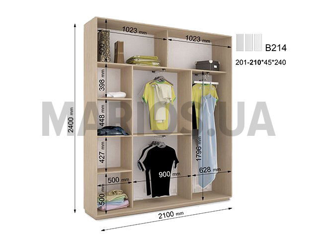 45.00см x 210.00см x 240.00см Характеристики шкафа Количество дверей3 двери Материал корпусаДСП 18мм, кромка ПВХ 0,5 и 2мм Оснащение6 полок, три зеркальные двери с пескоструем, 3 микролифта Форма шкафалинейный Трехдверный шкаф-купе В214 с пескоструем - это отличный выбор современности! Данная модель отличается своей практичностью, качеством и превосходным дизайном, поэтому она не только украсит Ваш интерьер, но и вместит в себя много нужных вещей.В комплектацию шкафа входит: 6 полок, три отделения для тремпелей с тремя микролифтами и три двери с профилем Элит в цвете серебро. Есть возможность установить блок В35.Двери шкафа зеркальные, украшенные пескоструем, где Вы сможете выбрать узор из ста рекомендованных вариантов, или предложить свой макет для дизайна. Размеры шкафа: глубина/ширина/высота - 45/201-210/240. Цена указана за шкаф стандартного размера шириной 210см. Шкаф с нестандартной шириной от 201см до 209см оплачивается дополнительно. Также возможно изготовление шкафа высотой 250см. Пескоструйная обработка - это холодная абразивная обработка поверхности стекла путем повреждения ее поверхности песком или иным абразивным порошком, распыляемым потоком воздуха, или же декоративное матирование стекла.Материалы, из которых изготовлен шкаф-купе В214 с пескоструем: Корпус: ДСП 18мм; Фасады: зеркальные с пескоструем; Кромка: ПВХ 0.5 и 2мм; Зеркало: 4 мм; Штанга: микролифт металлический. Профиль: Элит или Квадратный. Цвет: серебро, золото светлое, бронза светлая, венге глянец. Раздвижная система: алюминиевая. Стандартные цвета в складской программе: венге магия; яблоня Локарно; ольха горная; дуб молочный; белый; орех лесной. Срок изготовления шкафов в стандартной цветовой гамме составляет 3-4 дня. Стандартные цвета, не входящие в складскую программу: орех темный. Срок изготовления шкафов в этих цветах составляет 10 дней. Нестандартные цвета: дуб арканзас темный. Шкафы в нестандартных цветах изготавливаются за дополнительную плату в течении 10 дней. Данные цвета не используются для фасадов.