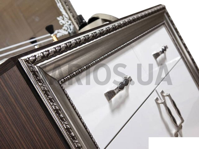 52.40см x 110.20см x 179.20см Вес0.00кг Характеристики мебели Материалламинированное ДСП, декоративный полиуретановый профиль Трюмо Элизабет белое - это отличное оригинальное дизайнерское решение при оформлении Вашей спальни. Такой предмет мебели дополнит уже существующую мебель и придаст роскоши Вашей комнате. Имеет горизонтальную поверхность для размещения различных косметических принадлежностей или других личных вещей. Дополнительно укомплектовано двумя выдвижными ящиками с хромированной фурнитурой и две распашные дверцы, за которыми скрываются дополнительные полки. Также, в комплект входит зеркало. Цена указана за трюмо Элизабет в цвете White.Материалы:ламинированное ДСП; декоративный полиуретановый профиль; ручки из хромированного металла.Размеры:высота: 179,2 см; ширина: 110,2 см; глубина: 52,4 см.