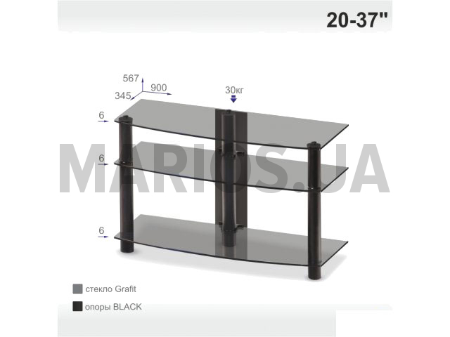 34.50см x 90.00см x 38.70см Характеристики мебели Материал стекло, металл Тумба из стекла под телевизор Commus Альфа Bl Характеристики: Максимальная диагональ телевизора: 37 (дюймов) Максимально допустимая нагрузка: 30 кг Цвет: черный. Размер тумбы: Ширина: 90 см Глубина: 34.5 см Высота: 38.7 см Материал: Полки - стекло. Ножки - металл.