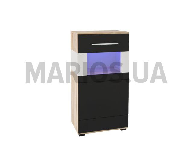 55.00см x 37.50см x 106.00см Характеристики мебели Материал ламинированное ДСП 16 мм, МДФ 19 мм Тумба Neon 3. Наполнение: полки. Корпус изготовлен из ламинированной плиты ДСП толщиной 16 мм, фасад - ламинированная плита МДФ, толщиной 19 мм, поклееная глянцевой пленкой ПВХ, используется кромка ABS 2 мм. На двери установлен механизм плавного закрывания.