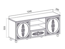35.00см x 124.80см x 53.50см Характеристики мебели Материал ДСП, МДФ, ПВХ Тумба под ТВ АС-13 Ассоль – это роскошь в каждой мелочи. Прекрасный образец сочетания классического стиля и современных технологий в одном изделии. С ней Ваш любимый телевизор будет в безопасности, а также Вы сможете найти для каждой вещи ее место. Имеет стеклянную полочку для проигрывателя, выдвижной ящик и две отдельные секции за распашными дверцами. Размеры: ширина: 124,8 см;высота: 53,3 см;глубина: 35 см. Материалы: модули изготовлены из ДСП 16 мм;применяются МДФ фасады;торцы деталей обклеиваются ПВХ-кромкой. Особенностью является применение технологии объемного нанесения узора. Ручки – фигурные. Вы также можете приобрести полноценную систему Ассоль, в которой скомбинированы различные элементы интерьера.