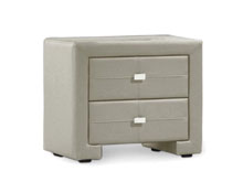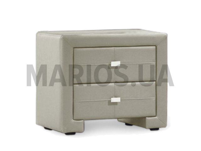Два выдвижных ящика тумбы "Барселона" дополнены прямоугольными металлическими ручками. Кожаная обивка делает мебель непритязательной в уходе и смягчает случайные соприкосновения.