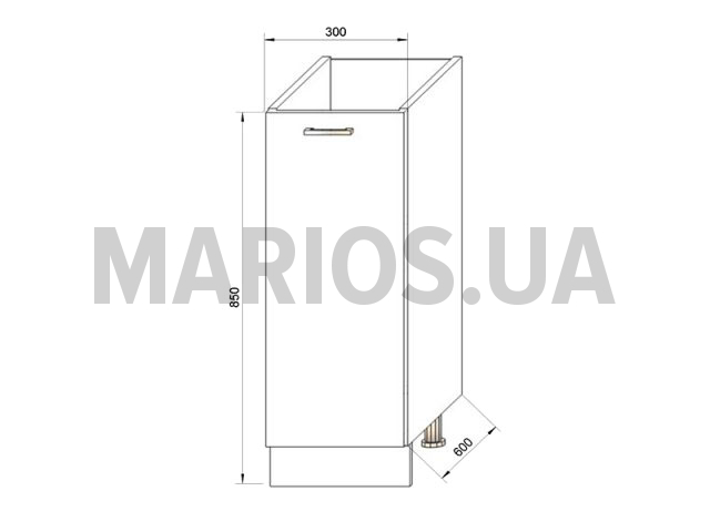 60.00см x 30.00см x 85.00см Характеристики кухонных модулей Тип нижние Форма линейная Фасад закрытый, с дверцей Тип открывания в сторону Материал корпуса ДСП Цвет фасада белый Цвет корпуса белый Тумба Шарлотта низ 30х85 Важно: В стоимость кухонных тумб не входит стоимость столешницы и цоколя.