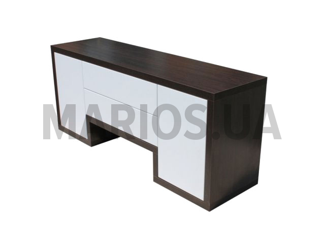 Тумба TV-line 01 – компактная и в то же время вместительная модель 296. Выдвижные ящики по центру оснащены телескопическими направляющими. Два боковых ящика, скрыты дверцами. Основной материал корпуса – ДСП 32 мм, фасад изготовлен из МДФ 16 мм. Небольшие размеры тумбы позволяют свободно разместить ее в даже небольшом помещении. Размеры тумбы: 1100х450х350 мм Материалы: МДФ 16 мм (ПВХ пленка цвет белый матовый) ДСП 32 мм (цвет венге) Кромка ПВХ 2мм Телескопические направляющие Возможные цвета ДСП: Белый структурный Орех темный Дуб сонома Венге