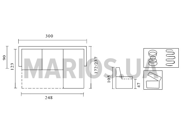 90.00см x 300.00см x 105.00см Вес0.00кг Характеристики дивана (кресла, тахты, углового дивана) Механизм трансформациидельфинОснова сиденияпружина боннель, пенополиуретан, пружина змейкаРазмер спального места130х248Бельевой ящикесть Угловой диван Султан 32 Характеристики: Ширина: 300 см Глубина: 90 см Высота: 105 см Высота сидения: 47 см Глубина сидения: 57 см Габариты в разложенном состоянии: 300х237х105 см Спальное место: 130х248 см Механизм трансформации: дельфин. Наполнение дивана: пружина боннель, пружина змейка, пенополиуретан. Каркас углового дивана: хвойные породы дерева. Задняя спинка: техническая ткань. Подлокотники: дерево, ДСП, ДВП, фанера.