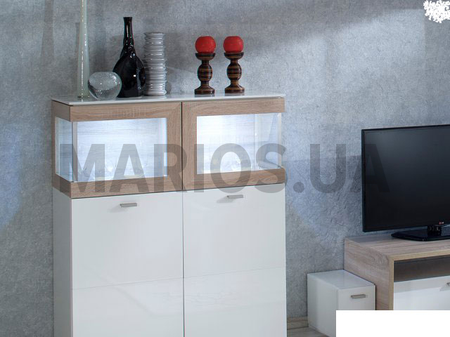 41.00см x 101.00см x 125.00см Вес 0.00кг Характеристики мебели Материал ЛДСП Витрина двухдверная Вита Размеры: Ширина: 101 см Глубина: 41 см Высота: 125 см Материал: ламинированный ДСП (Kronospan) 18 мм Цвет: белый лак, дуб сонома.