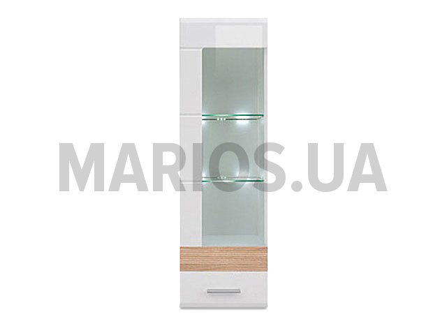 35.00см x 40.00см x 132.00см Характеристики мебели Материал ламинированное ДСП Витрина навесная SFW1W/13/4L Хэппи с прозрачным стеклом. Элемент модульной системы Хэппи. Изготовляется в двух цветовых решениях: белый/белый глянец, белый глянец/дуб сонома.