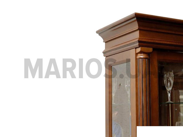 Витрина состоит из пяти стеклянных полок, на которые можно выставить чайные сервизы, бокалы, столовые наборы.