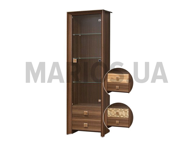 62.00см x 41.00см x 198.00см Характеристики мебели Материал ДСП Витрина Палермо Элемент модульной системы Палермо. Возможно изготовление в таких цветовых вариантах: Фасад - ДСП дуб борас, дуб борас/кожа питона, дуб борас/зебрано Корпус - ДСП дуб борас Открытая витрина со стеклянными полками и двумя выдвижными ящиками. Из элементов системы Палермо можно укомплектовать гостиную, спальню и кабинет.
