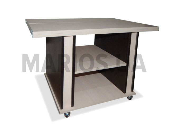 90.00см x 90.00см x 55.00см Характеристики мебели Материал ламинированное ДСП Журнально-обеденный стол трансформер "Ричард" изготовлен из ЛДСП толщиной 16мм. В процессе изготовления используется кромка ПВХ толщиной 0,6/22мм фирмы MAGG (Польша), фурнитура импортная, направляющие телескопические, колесики прорезиненные. Стол оснащен дополнительной полкой. Возможные цвета: дуб венге+дуб молочный;дуб молочный+дуб венге;береза карельская+яблоня локарно;яблоня локарно+береза карельская. Размеры: Ширина: 90см ( в разложенном виде 120см); Глубина: 60см ( в разложенном виде 90см); Высота: 55см ( в разложенном 75см).
