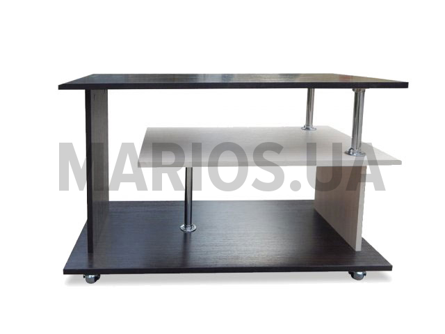 Журнальный стол Аленка изготовлен из ЛДСП толщиной 16мм.В процессе изготовления используется кромка ПВХ толщиной 0,6/22мм фирмы MAGG (Польша), фурнитура импортная, опоры изготовлены из металлической хромированной трубы, колесики прорезиненные. Возможные цвета: дуб венге+дуб молочный; дуб молочный+дуб венге; яблоня локарно+береза карельская; береза карельская+яблоня локарно. <strong style="font-size: 14px;">Размеры журнального стола<table border="1" cellpadding="5" cellspacing="1" rules="all" style="width: 450px;"><tbody> Высота, смШирина, смГлубина, см 559045
